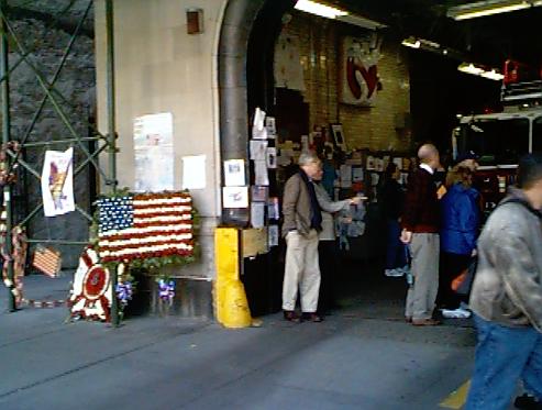 When walking along the streets of Manhattan you are bound to pass a firestation. Two months earlier, you could quite easily get away with not noticing them: rather obscure red doors in large office blocks along the many streets and avenues of this great city. Now every fire station is a shrine to the firefighters that lost their lives in the aftermath of the attack. Every single firestation in Manhattan has lost one or more of its crew; some stations have been wiped out completely. The stations are covered with flowers, letters, little notes, poems, some of them written by children as young as thirteen years old. One particularly heartbreaking note, written in the handwriting of a six year old, said: "Daddy, please come home. I miss you"...